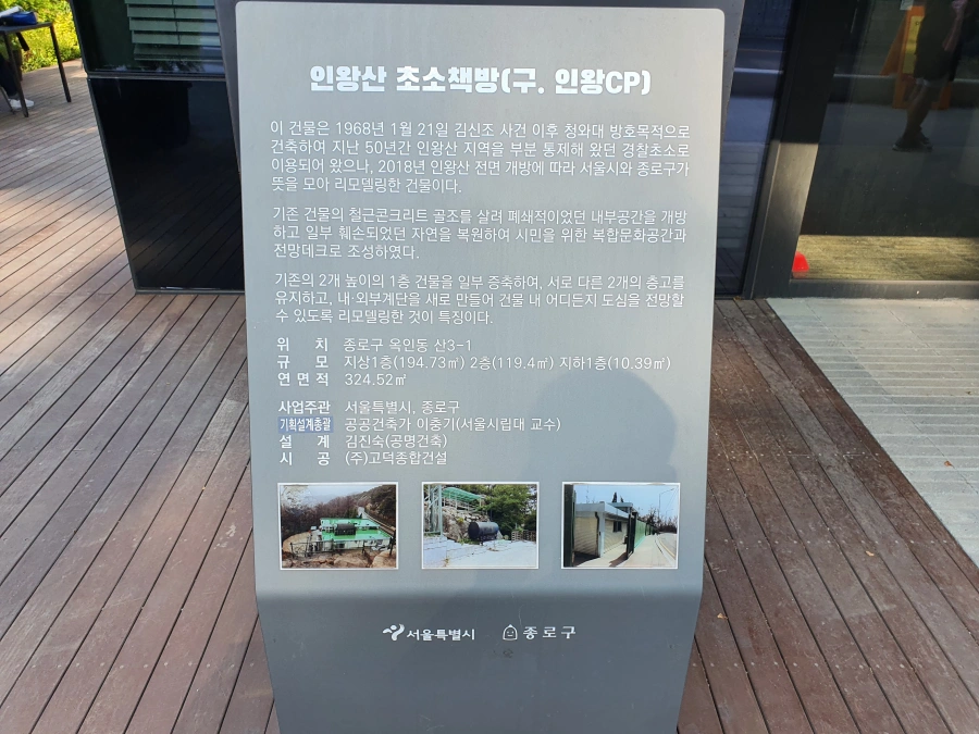 기존엔 청와대의 방호 목적으로 사용되던 경찰 초소였다는데.. 초소라 생각하면 당연히 감시가 용이한 위치에 설치하지 않을까? 그래서 그런가 이곳에서 보는 서울 풍경이 꽤나 시원하게 펼쳐져서 사람들이 많이 찾는 듯 하다.