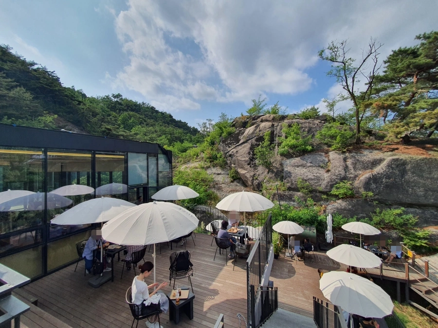 테라스 바로 옆으로는 산 자락의 높은 절벽이 위치하고 있다. 원래 이런 지형이었던건가..?