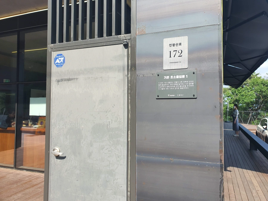 한 예로 들어가는 입구에는 기존 초소 출입문이 그대로 남아있다.