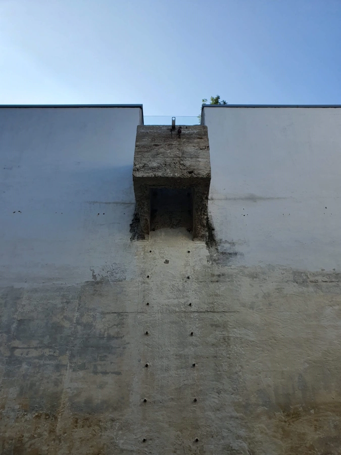 저수조로 사용되었던 건물이라 물이 빠져나가고 들어오면서 생긴 물 얼룩이 그대로 남아있다.