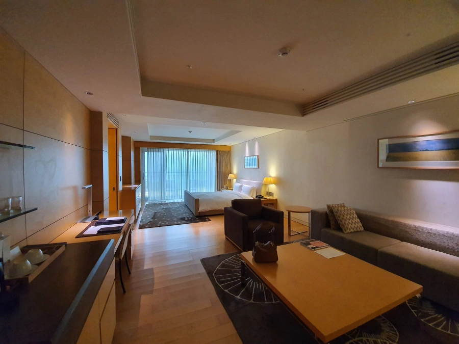 나름 스위트 룸이라 그런지 긴 소파가 놓여진 공간하고 화장실도 넓게 구성되어있고 시원한 느낌은 들었는데 침대 부분을 제외하고 소파 놓여진 공간에 천장 조명이 없어서 해가 지면 방의 불을 켜도 어둑한 기분이 들었다.