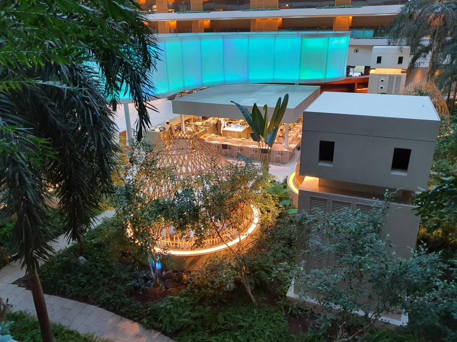 엘리베이터에서 객실로 향하는 복도가 이 중앙홀 - 흔히 건축에서 말하는 아트리움 (atrium) - 에 면해있기 때문에 객실로 가면서도 계속 접해있고, 그리고 조식을 먹거나 잠시 휴식을 하거나 호텔 내부의 바를 가거나 대부분의 요소가 다 여기에 몰려있다.