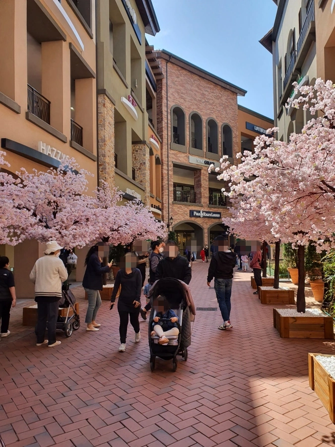 봄이라 아울렛 골목에는 벚꽃이 있었는데 생화는 아니고 조화였다. 그래도 기분도 내고 사진 찍기에는 좋았다.