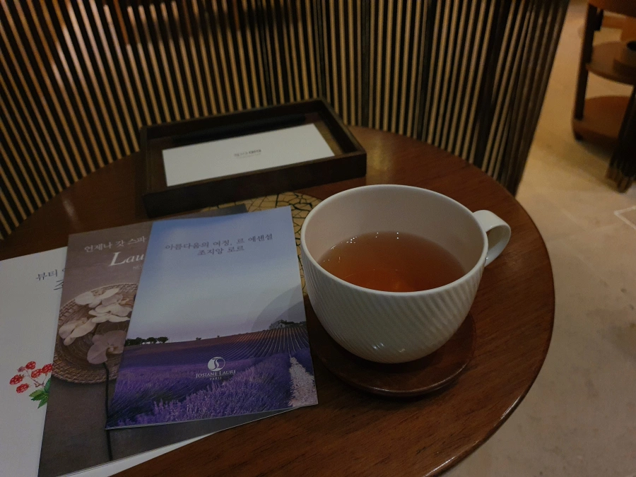 끝나고 나서도 차가 준비되어있어서 나가기 전에 한 잔 여유롭게 마시면서 좀 앉아있다가 다시 객실로 향했다.
