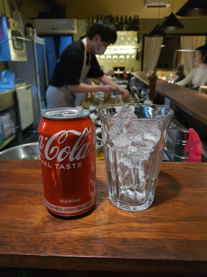 마실 수 있는 음료에 와인도 있었는데, 차를 끌고 오다 보니까 운전을 해야 해서 와인은 마시지 못하고 그냥 콜라를 시켰다. 와이프한테 와인 먹고 싶으면 혼자 마셔도 되니까 와인 마셔~ 했더니 자기도 그냥 콜라 마시겠단다.