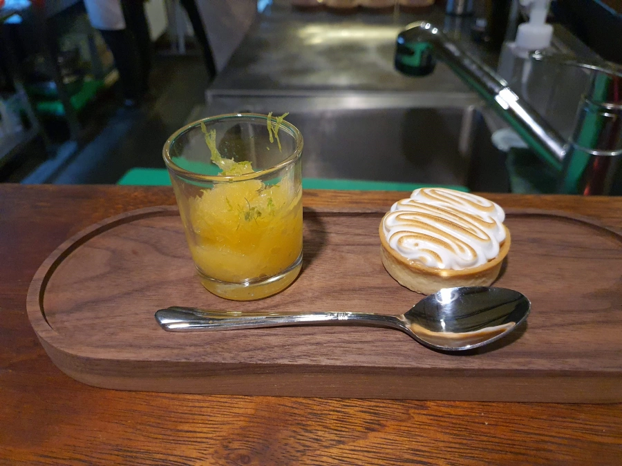 마무리 디저트로는 라임을 섞은 레몬 셔벗과 머랭 올린 레몬 타르트가 나왔다.
