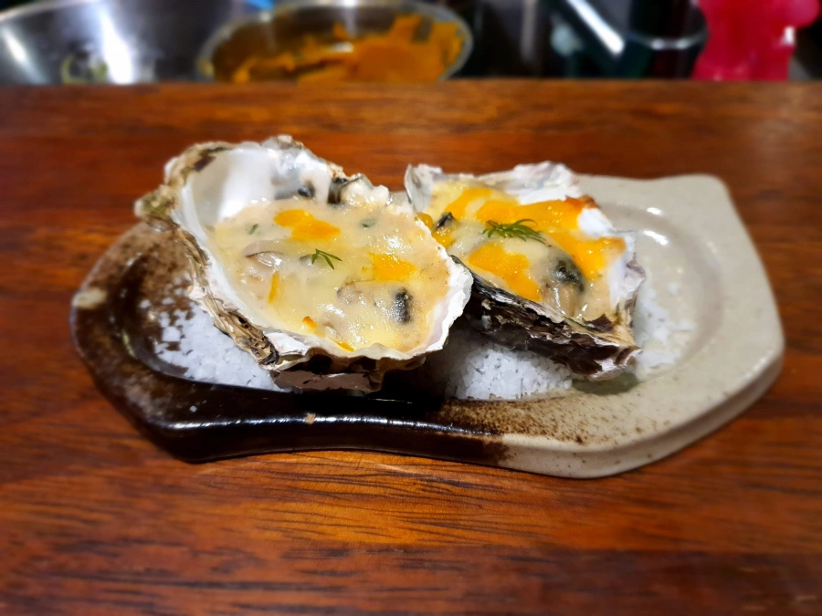 굴인데 약간 그라탕 식으로 치즈가 올라가있는데 안에는 시금치 소스가 들어가있었다.