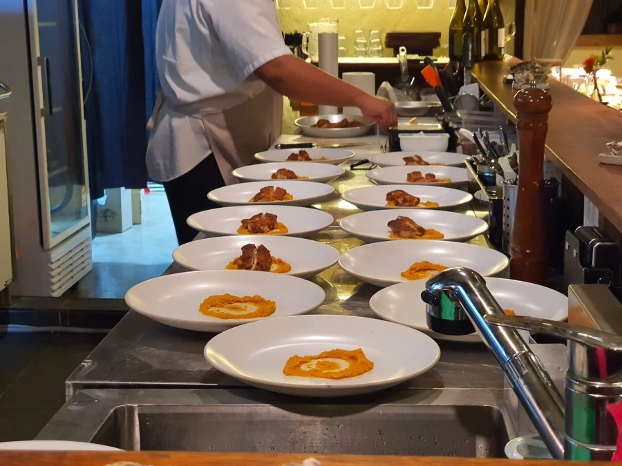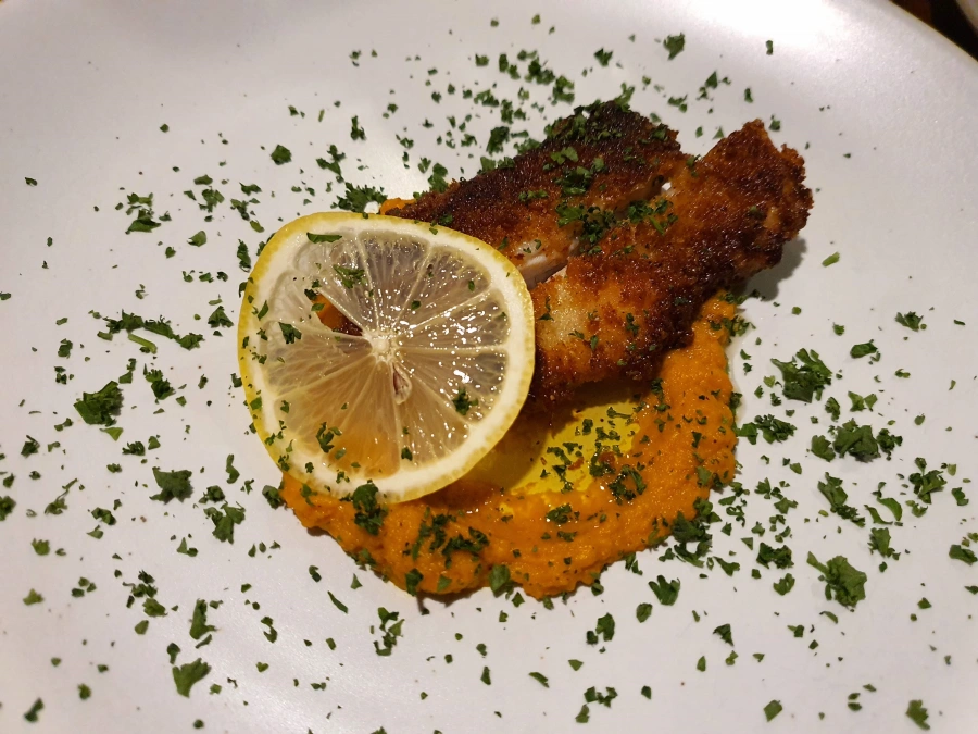 이건 닭가슴살 요리였는데 밑에는 당근 퓨레가 깔려있었다.