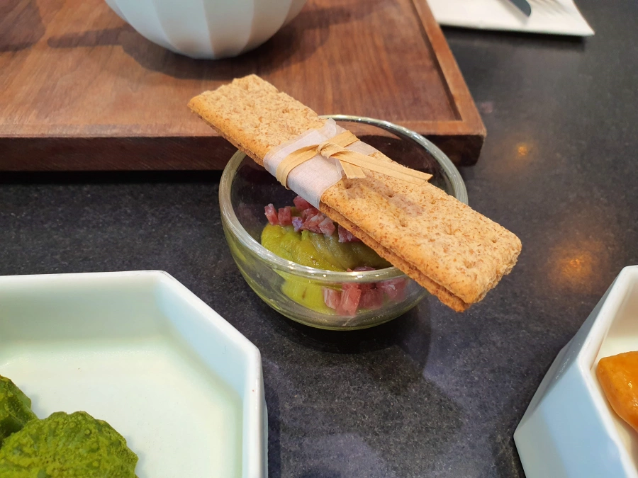 통밀크래커에 아보카도 딥을 찍어먹는 거였는데, 이건 그냥 생각했던 맛 그대로였다.