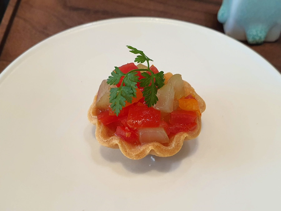 4색 타르트라고 제주 한라봉 드레싱으로 버무린 무지개 토마토와 청포도를 올린 타르트라고 하는데,
