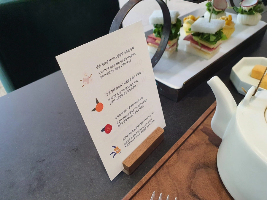 애프터눈티 세트는 마지막 반전 디저트를 제외하고 1단부터 3단까지 있는데 이 설명서는 3단의 디저트 설명서였다.