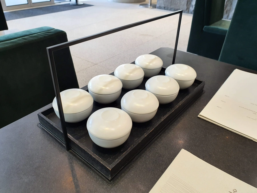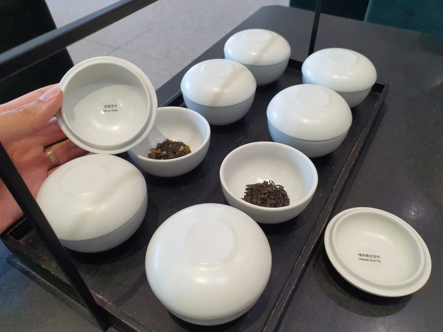 추가 금액이 붙는 마스터즈 티를 제외한 8개의 찻잎을 시향할 수 있었는데, 하나씩 다 맡아보고 나서 나는 배향이 달큰하게 나는 달빛걷기를 골랐고 와이프는 깔끔한 향의 제주화산암차를 골랐다.