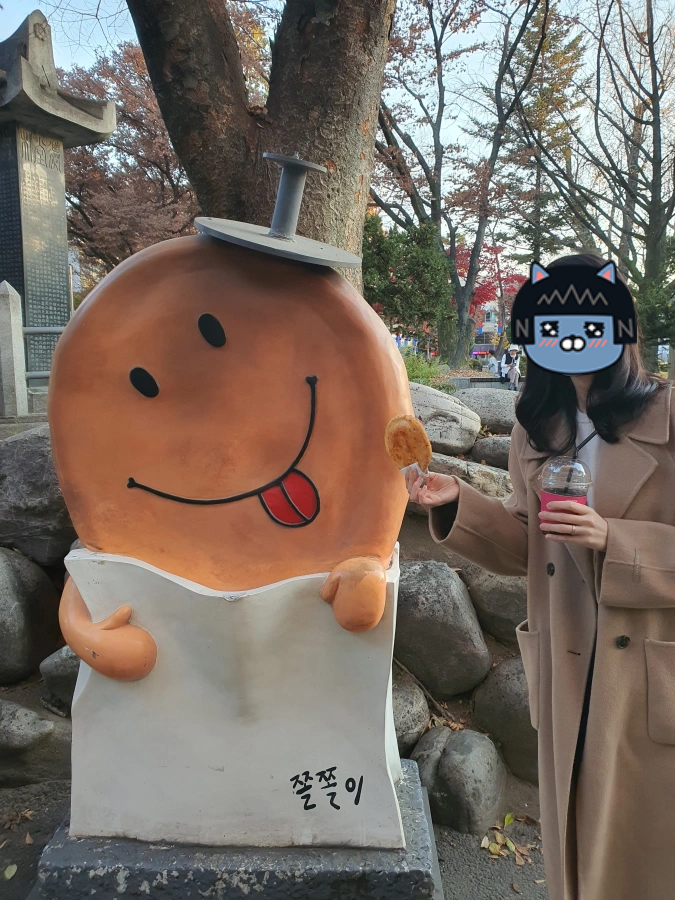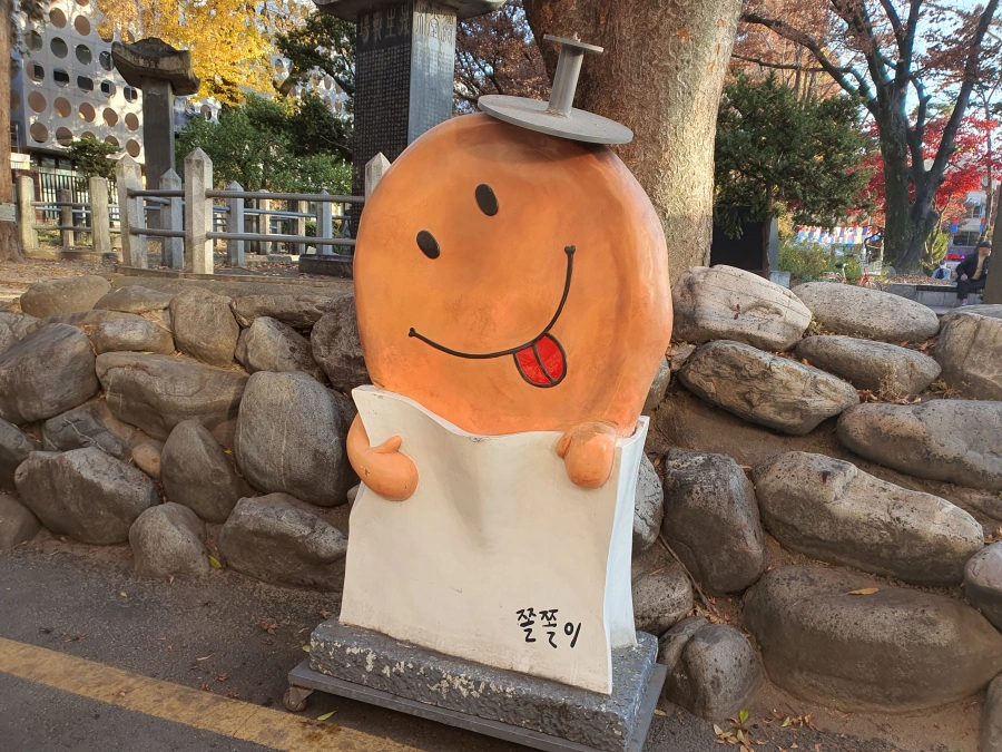 가게 앞에 있는 쫄쫄호떡의 마스코트 쫄쫄이. 사람들이 여기서 인증샷 한번 찍고 간다.