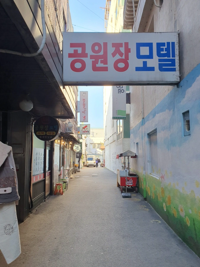 공원장 모텔 글씨체가 옛날 느낌 나는 간판이라 찍어봤다. 이름도 그렇고..