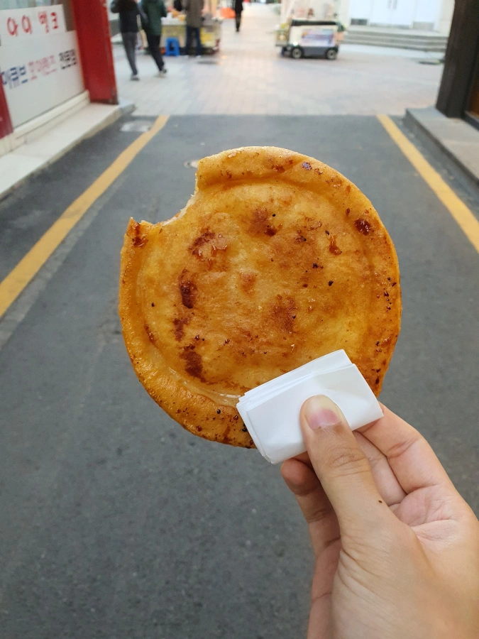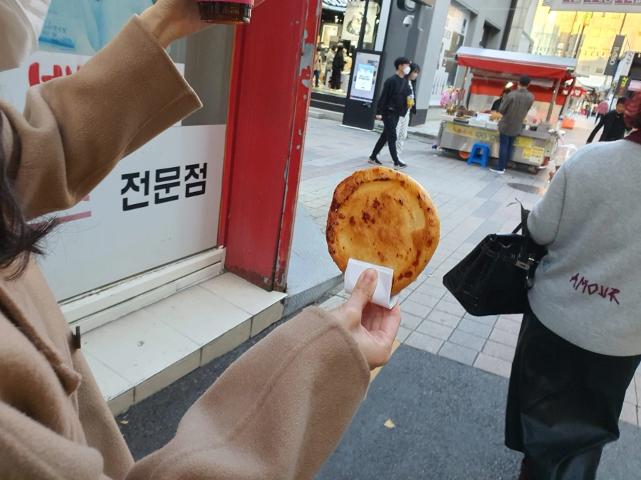 그리고 쫄쫄호떡 포장도 받고 우리가 먹을 것 도 하나씩 받아서 나왔다.