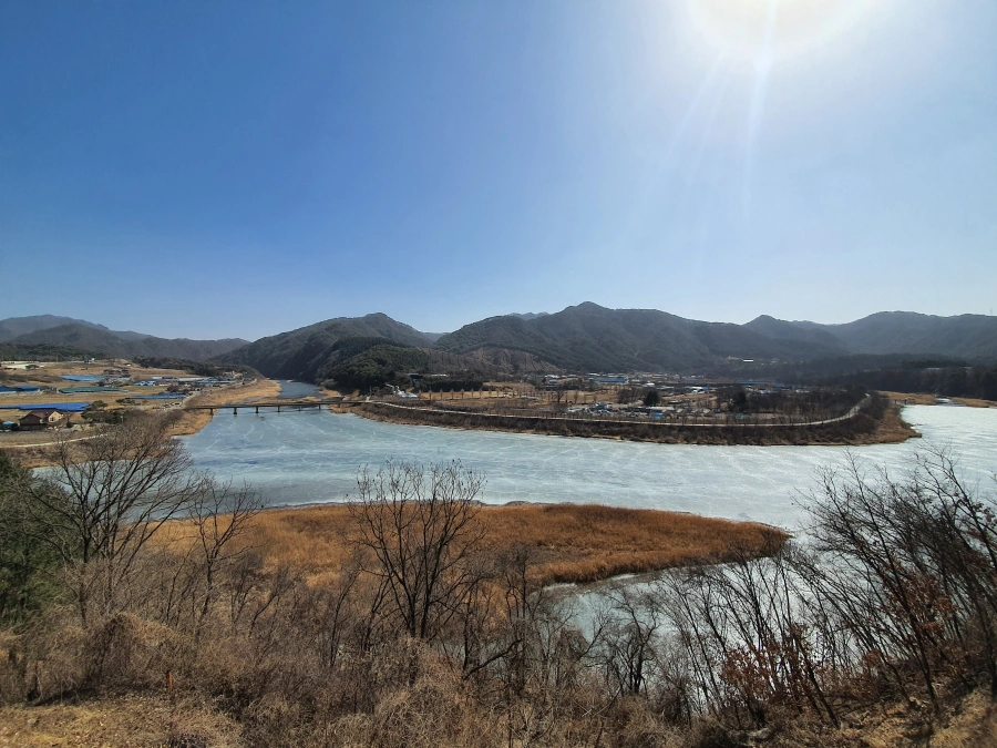 중간에 휴게소 한 번 들렸는데 날이 아직 추워서 그런가 강이 꽁꽁 얼어붙은 모습 한번 구경하고 다시 버스를 탔다.