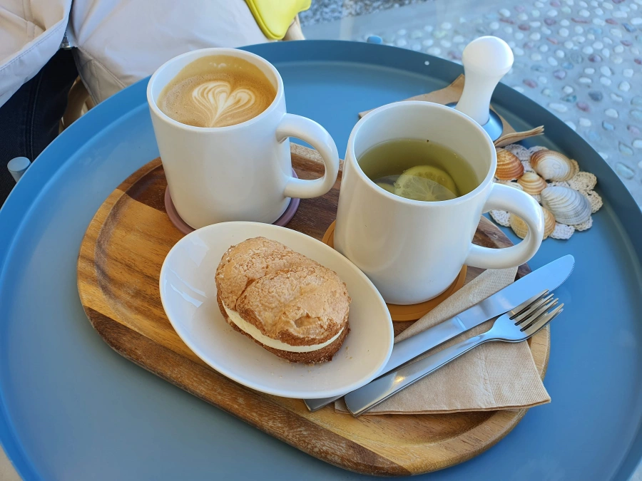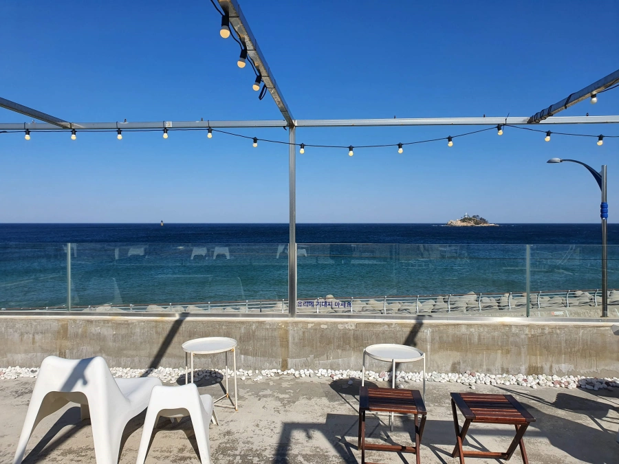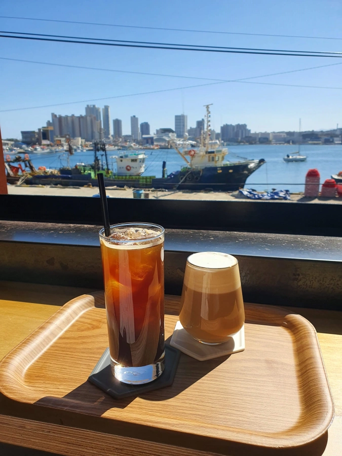 밥 먹을 먹고 나와서 바다가 보이는 카페에 가기로 했다.