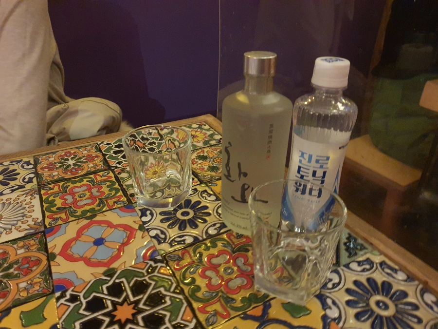 일단 화요 한병 시키고 토닉워터를 시켜 먹었다.