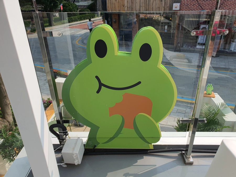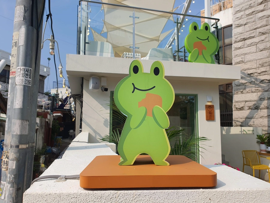 길을 걸어다니면서 이 개구리가 사람 이목을 확 이끌어준다.
