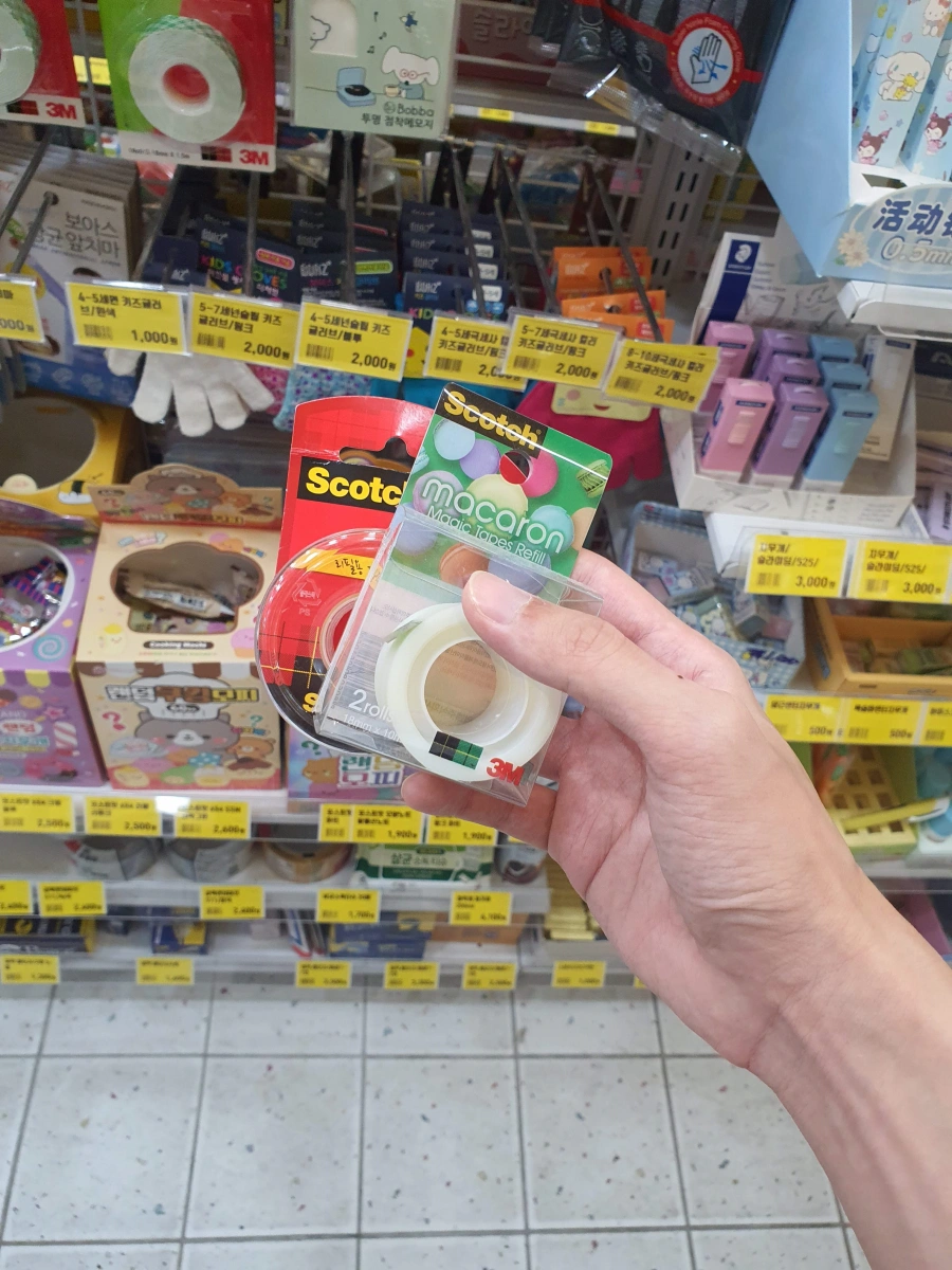 가보니 매직테이프는 없고 스카치테이프랑 매직테이프 리필심이 있어서 일단 두개 다 샀는데 막상 가서 뜯어보니 그냥 스카치테이프 알맹이 빼고 매직테이프 리필심 껴도 들어갈 것 같길래 그렇게 썼다.