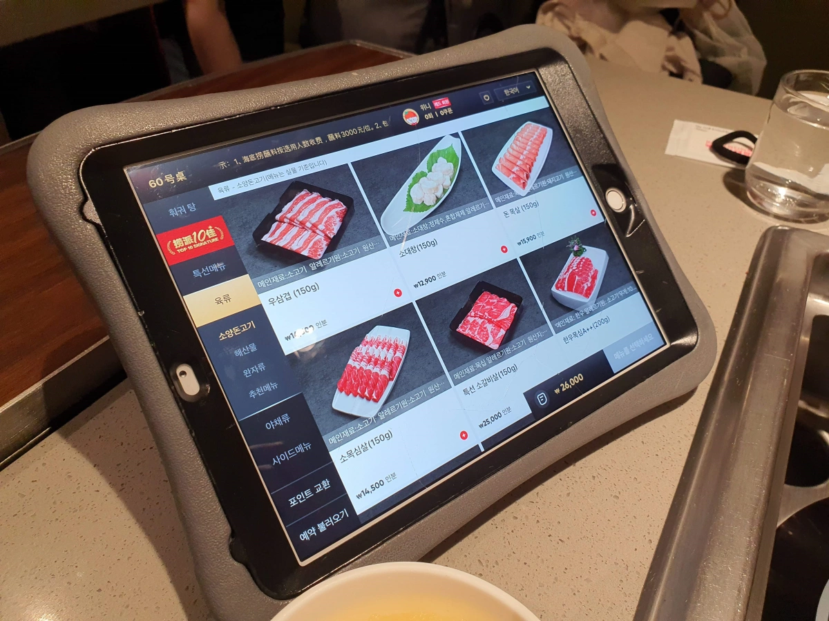 가입 한 이후에 태블릿을 통해서 메뉴를 골랐다.