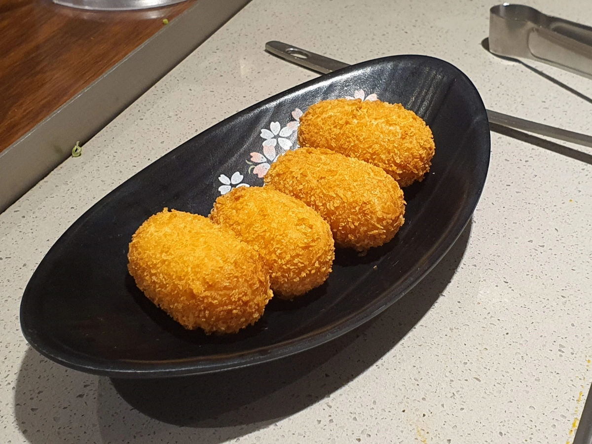 비쥬얼은 튀김이길래 뭐야 하고 한입 베어물었는데 이거 밖이 튀김이고 안에는 흑설탕 녹인게 들어가있더라.