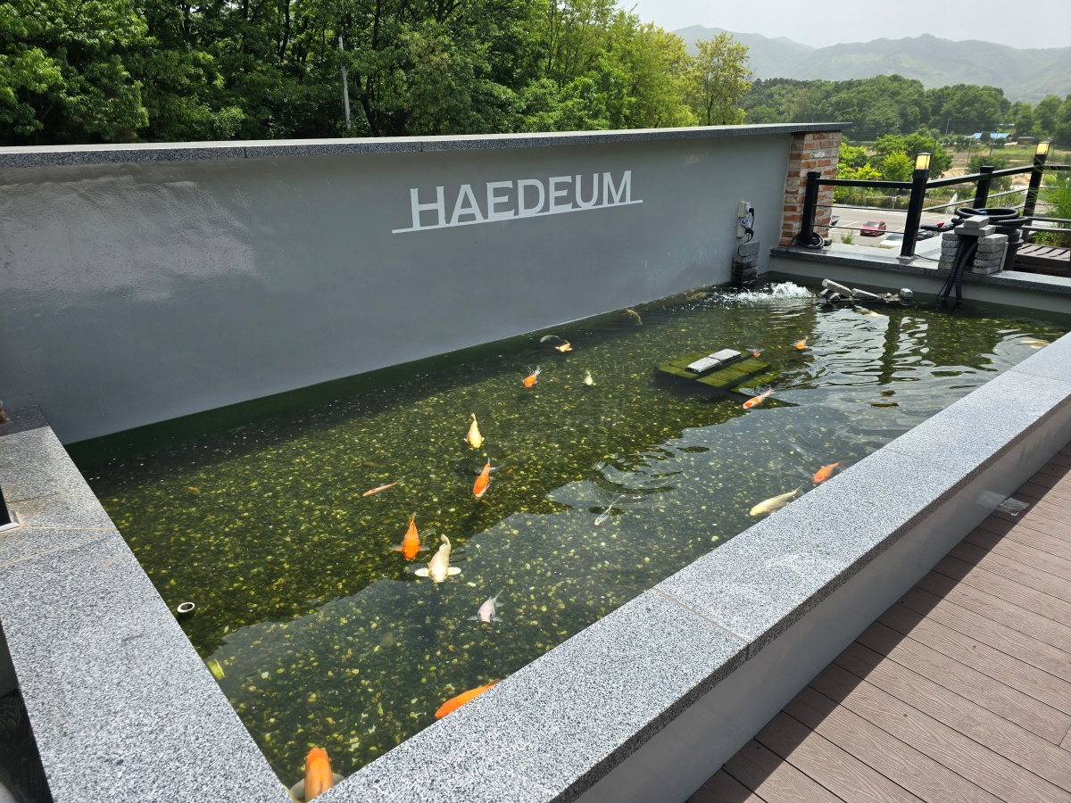 한 켠에는 금붕어가 살고 있는 작은 연못도 있는데, 카운터에 가보니 1일 한정 수량으로 물고기밥도 팔고 있었다.