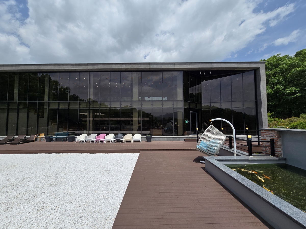 카페 단독 건물로 들어와있고 이 날이 일요일이라 그런지 이 건물 뒤쪽에 야외 결혼식장 하는 곳도 있었는데 마침 식을 하고 있었다.
